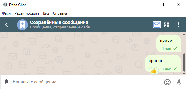 Есть плюсы и для обычных пользователей, когда нужно быстро обменяться ссылкой или фотографией между своими устройствами — раздел Сообщения, отправленные себе. Delta Chat имеет мини приложения и игры, которые позволяет запустить прямо в чате, например поиграть в шашки по сети.