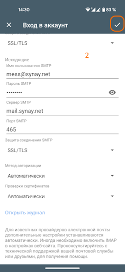 Скриншоты приложения для использования своей почты, настройки на Ваших почтовых ящиках могут отличаться от приведенных, уточняйте детали у поставщика услуг, а лучше заказывайте хостинг у нас и используйте уже приведенные, останется только поменять адрес и домен на свой.