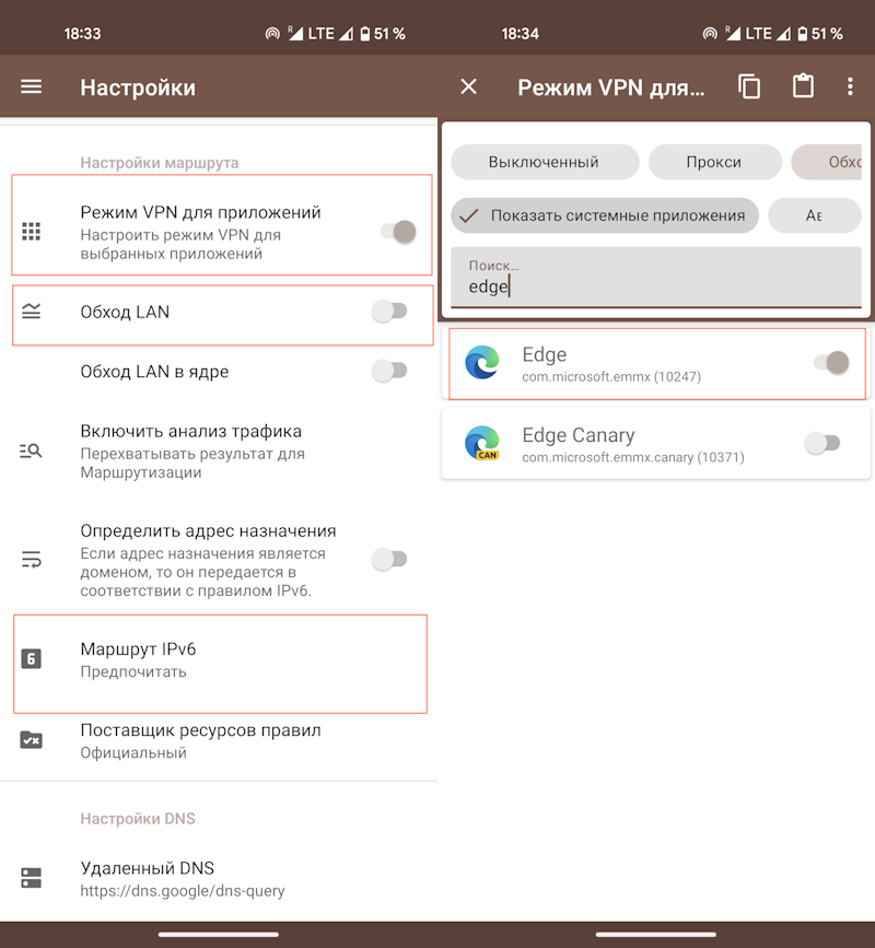 Выбранные приложения могут быть настроены, как исключение, и использовать обычный интернет, либо настроены только на использование через прокси.